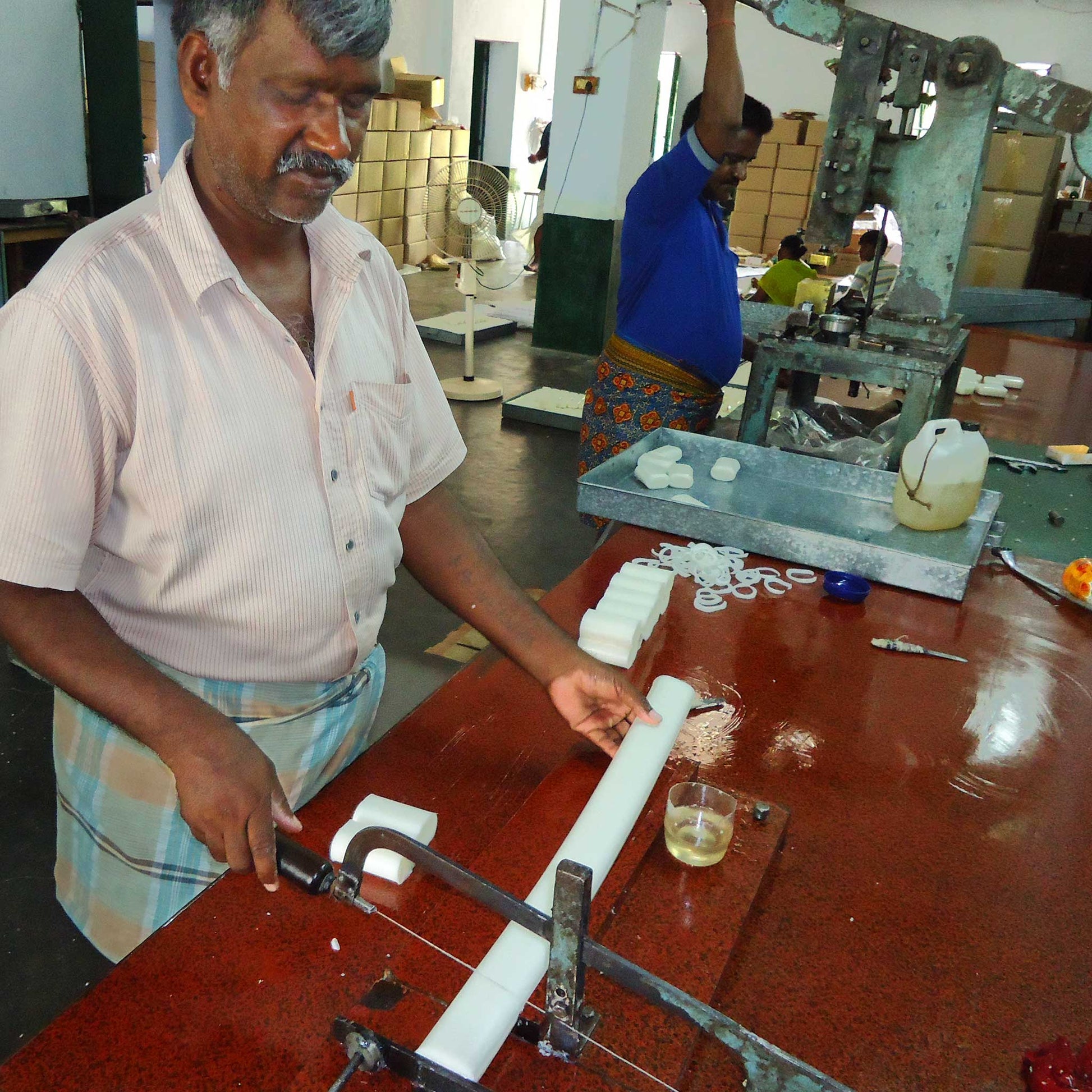 Made in India by the master soap makers of Palam Rural where one bar of soap sends one child to school for one day.
