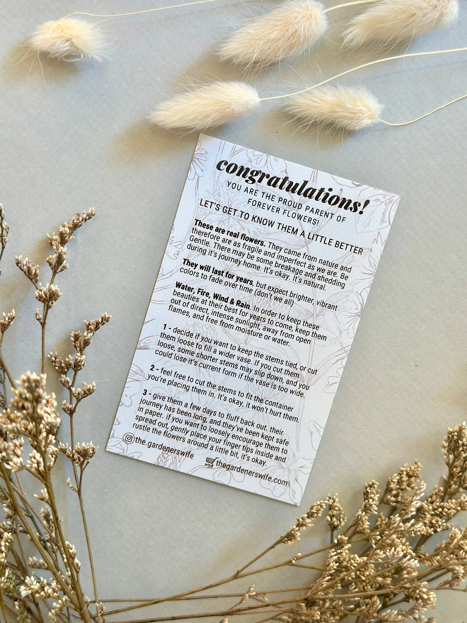 Also in the box is a tiny flower care card that will help your clients maintain their bouquets for years to come.