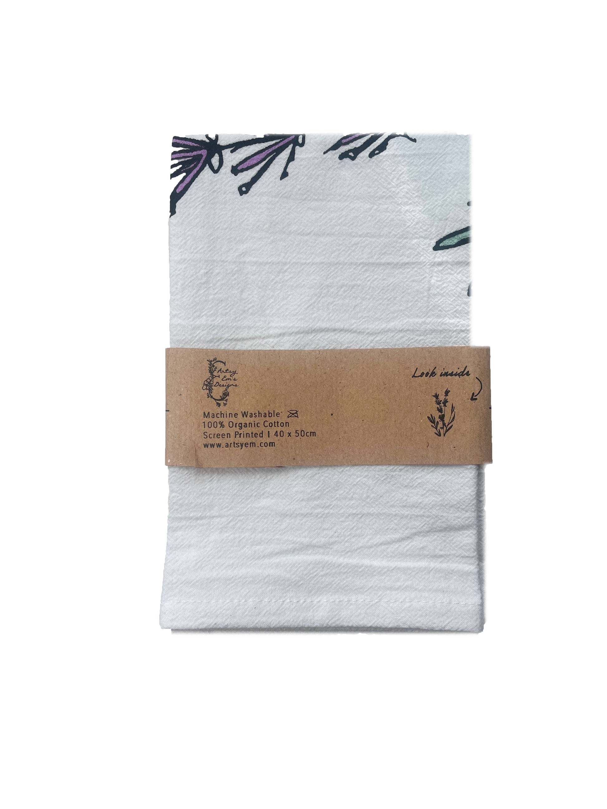A beautifully hand-designed and functional addition to your kitchen. This tea towel features an exquisite lavender illustration, capturing the essence of tranquility and relaxation. Made with high-quality materials, it combines style and practicality, making it a perfect choice for any flower lover.