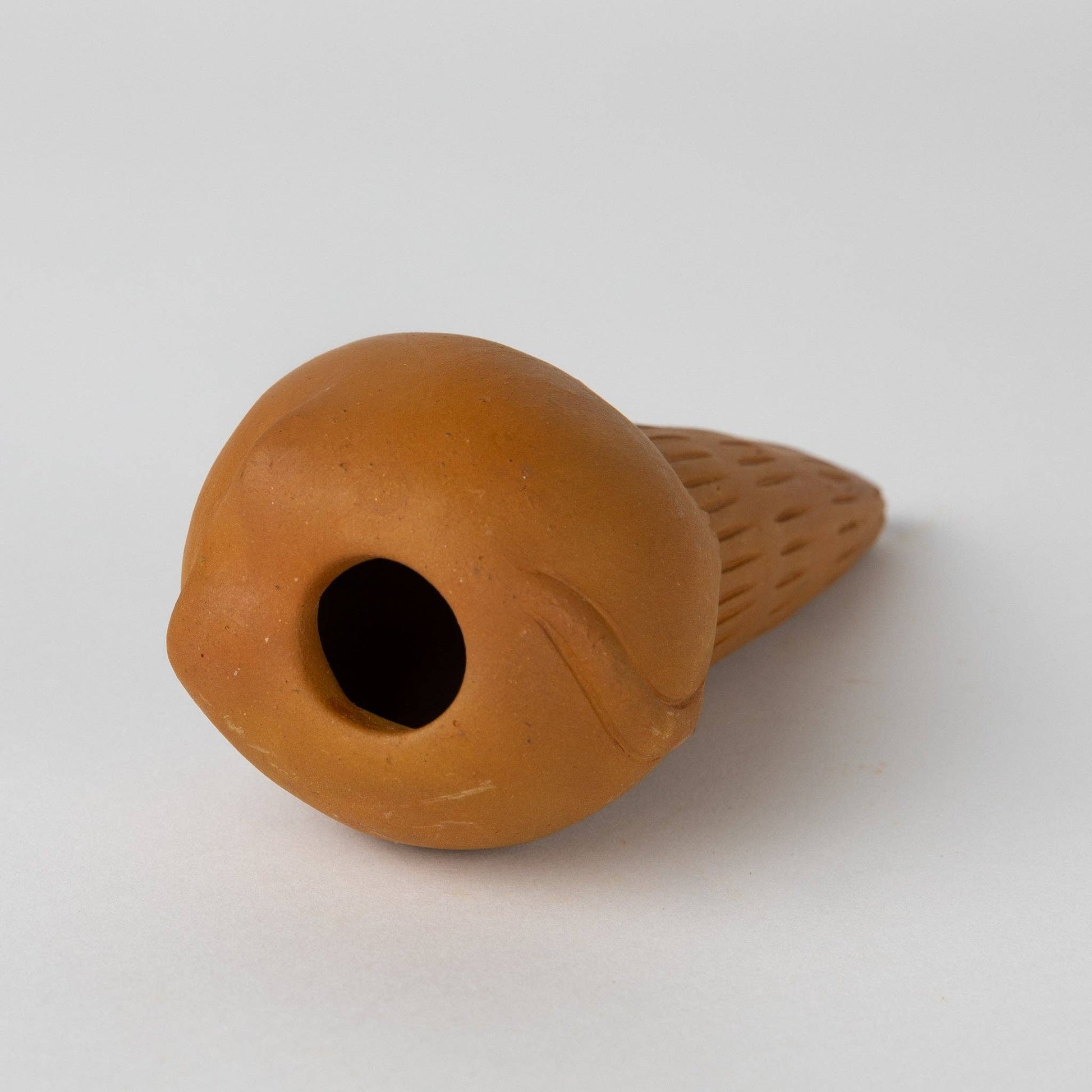 Handcrafted by artisans in Bangladesh. Materials: Terracotta - Measures: 5.5"L x 2"W (at widest part) - Colors: Natural - Barcode: 732919547443 - Handcrafted in Bangladesh